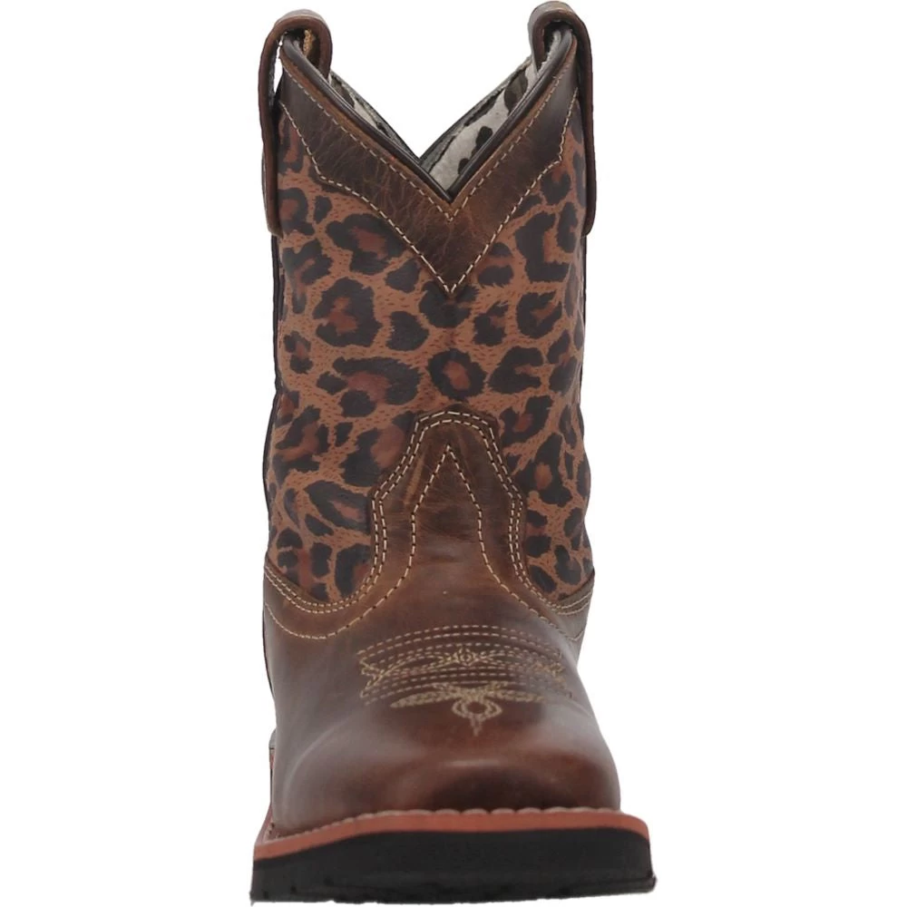 Western boots can be classy for your little one too. The authentic leather vamp and printed leopard shaft will make them feel special, just like the grownups.Â