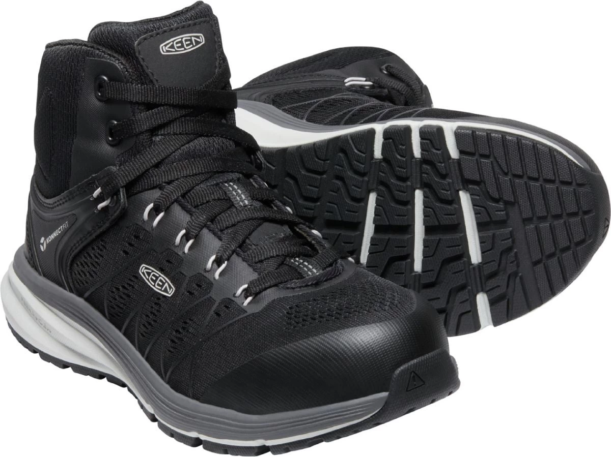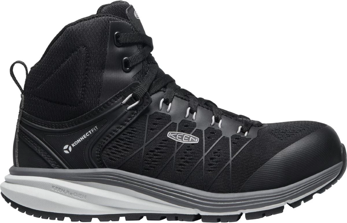 Comfort and performance, both, on the job! This mid height athletic safety shoe features KEEN.ReGEN’s proven midsole cushioning, a breathable mesh upper, carbon fiber safety toe and Keen’s KonnectFit heel capture system. This work shoe is suitable for those who spend their long shifts on indoor, hard flat walking surfaces in light manufacturing, transportation, delivery, etc.