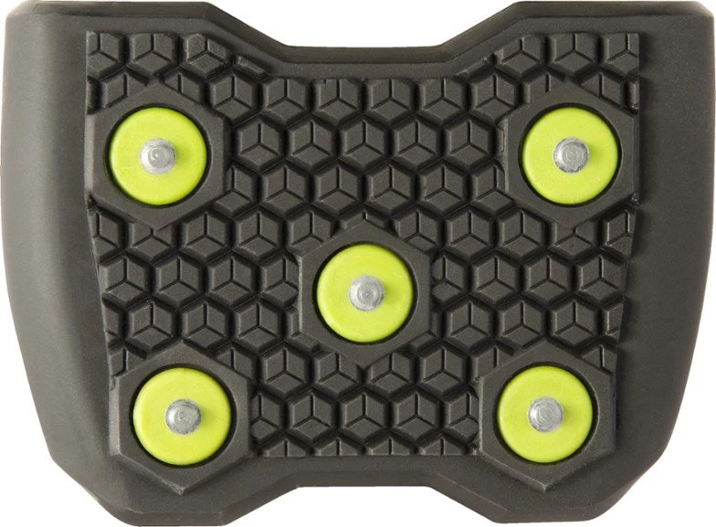 - 10 replaceable push-through steel spikes provide grippy traction in icy, snowy conditions