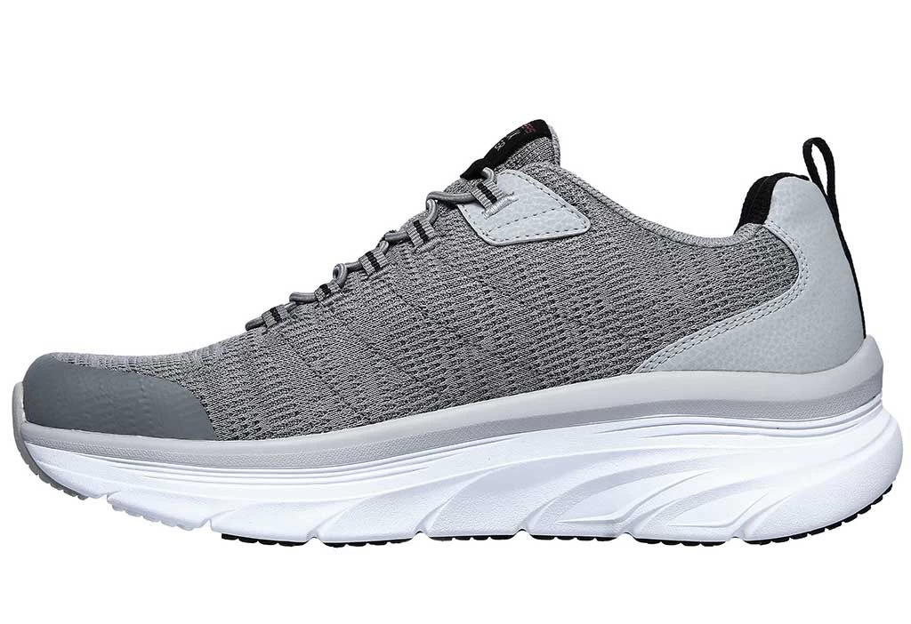 Take confident strides in a new pair of Skechers D’Lux Walker-Pensive. A slip-on design that features an athletic mesh and smooth synthetic upper with a bungee-laced front and cushioned Air-Cooled Memory Foam® insole.